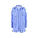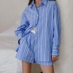 Home Dresses Blue And White Striped Lapel Casual Suit