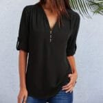 Be the first to review “V-neck Rhinestone Casual Loose Women’s Wear Rollable Sleeves Top” Cancel reply